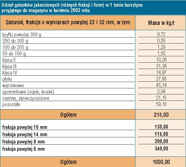 Po kwietniu br., z którego pochodzą poniższe dane o strukturze granulacyjnej każdej tony surowca oddawanego do magazynu, współczynnik udziału większych bryłek wyraźnie się poprawił. A cena kilograma dużych bryłek jest kilkanaście razy wyższa niż małych.