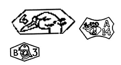 Wizerunki cech probierczych dla złota próby 0,585 w krajach Grupy Wyszechradzkiej