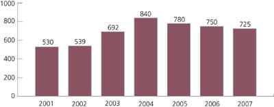 Dostawy z Rosji wzrosły w 2003 r. o 7% do poziomu 1,05 mln oz, do czego przyczyniły się głównie wzrost sprzedaży zapasów, a nie wzrost wydobycia. Natomiast zmniejszyła się podaż z Ameryki Północnej o prawie 25%, głównie z powodu 3-miesięcznego strajku oraz dodatkowo wskutek pogorszenia się jakości wydobywanej kopaliny (tab.2.).